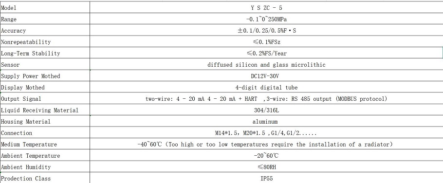 9. Käyttöympäristön olosuhteet: Seismisen kestävyystaso: Yleinen tyyppi V·H·2 tai V·H·3 seismisen kestävä tyyppi V·H·4. Suojaustaso: Yleinen tyyppi IP54: Tämä on suljettu tyyppi ja iskunkestävä tyyppi. 1P65 Lämpötila: Yleinen tyyppi (-40~70)°C; Iskunkestävä tyyppi (-5~55)°C (glyseroli); (-25 ~ 55) ℃ (silikoniöljy). Suhteellinen kosteus: <85%.