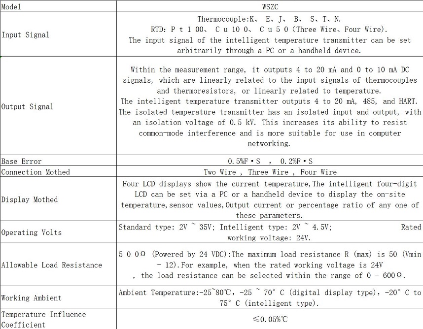 Integroitu lämpötilalähetin koostuu lämpötilamoduulista ja teollisuuslämpöpareista tai termoresistoreista. Se ottaa käyttöön kaksijohto-, kolmen johdin- ja neljassiirtomenetelmät. Se muuntaa teollisuustermoelementti- ja vastussignaalit lineaarisiksi 4-20 mA- tai 0-10 mA: n lähtösignaaleiksi. Tämä lähetin voidaan asentaa suoraan termoelementtien tai termoresistoreiden liitäntälaatikkoon integroidun rakenteen muodostamiseksi. Uuden sukupolven lämpötilan mittausvälineinä sitä voidaan soveltaa laajasti teollisuussektoreihin, kuten metallurgia, öljy, kemianteollisuus, voima, valoteollisuus, tekstiili, ruoka, kansallinen puolustus ja tieteellinen tutkimus.