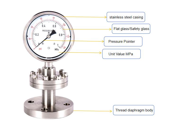 Korkean lämpötilan kestävä kalvo painemittari on tarkka paineen mittausväline, joka on erityisesti suunniteltu teollisuudelle, jolla on erittäin tiukat hygieniavaatimukset, kuten elintarvike, lääkkeet ja bioteknologia. Siinä yhdistyvät tavallisten painemittarien mittaustoiminnot hygienia-, korroosionkestävän ja korkean lämpötilan kestävien ominaisuuksien kanssa kalvojen tiivistysjärjestelmän kanssa.
