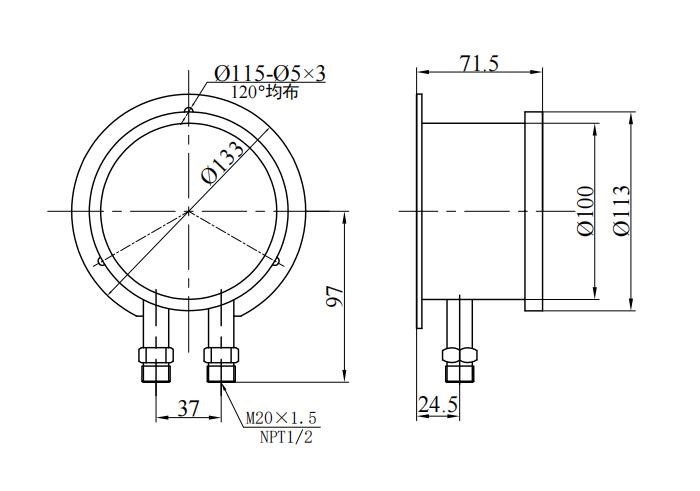 3. Yhteinen lankakoko: tavanomainen M20 × 1.5 , NPT1/2 (tai asiakkaan nimitys);