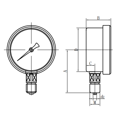 | Ye100 -Ⅲ | 85 | 50 | / | Φ 100 | 16.5 | φ 6 | M20 × 1.5 |