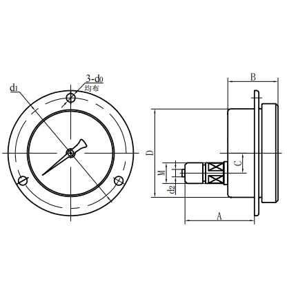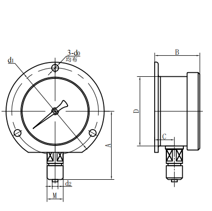 | YG100 -Ⅱ | 83 | 44 | 34 | Φ 100 | / | / | Φ 6 | M20 × 1.5 |